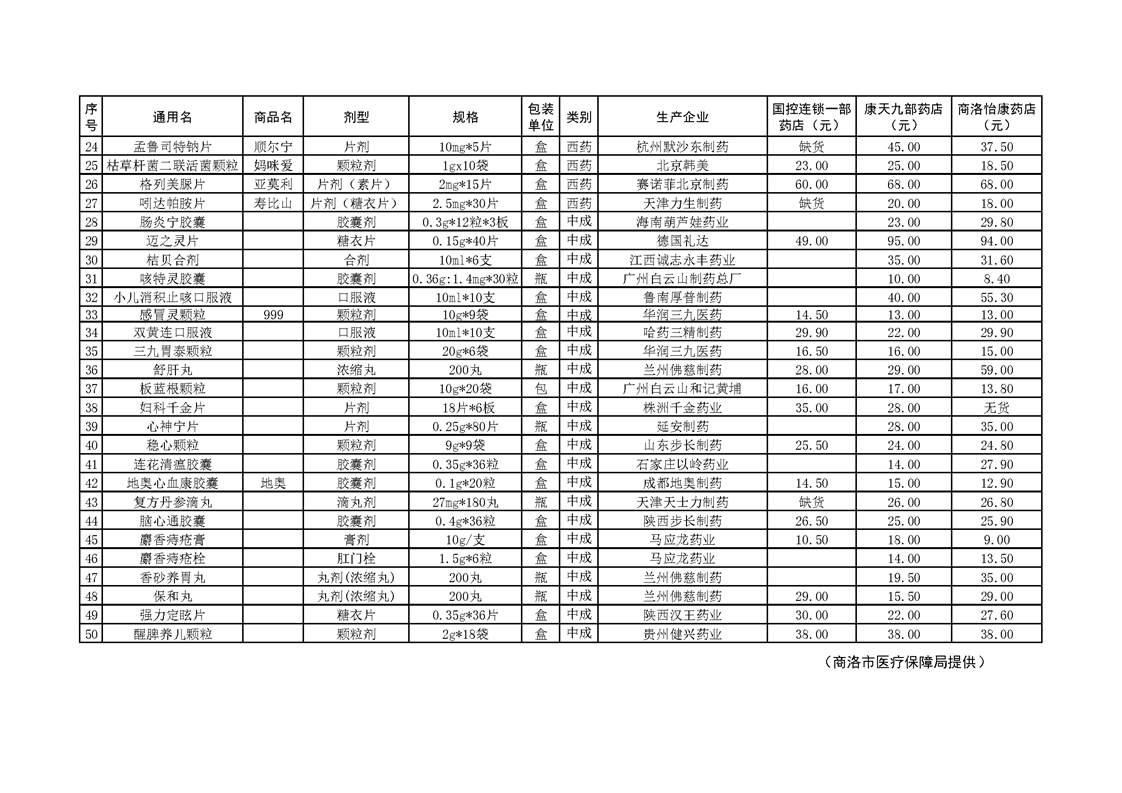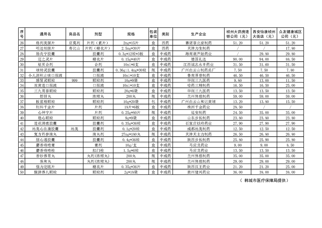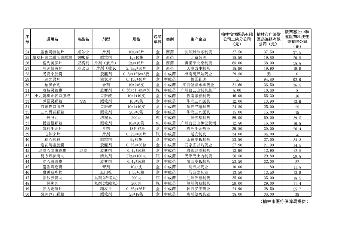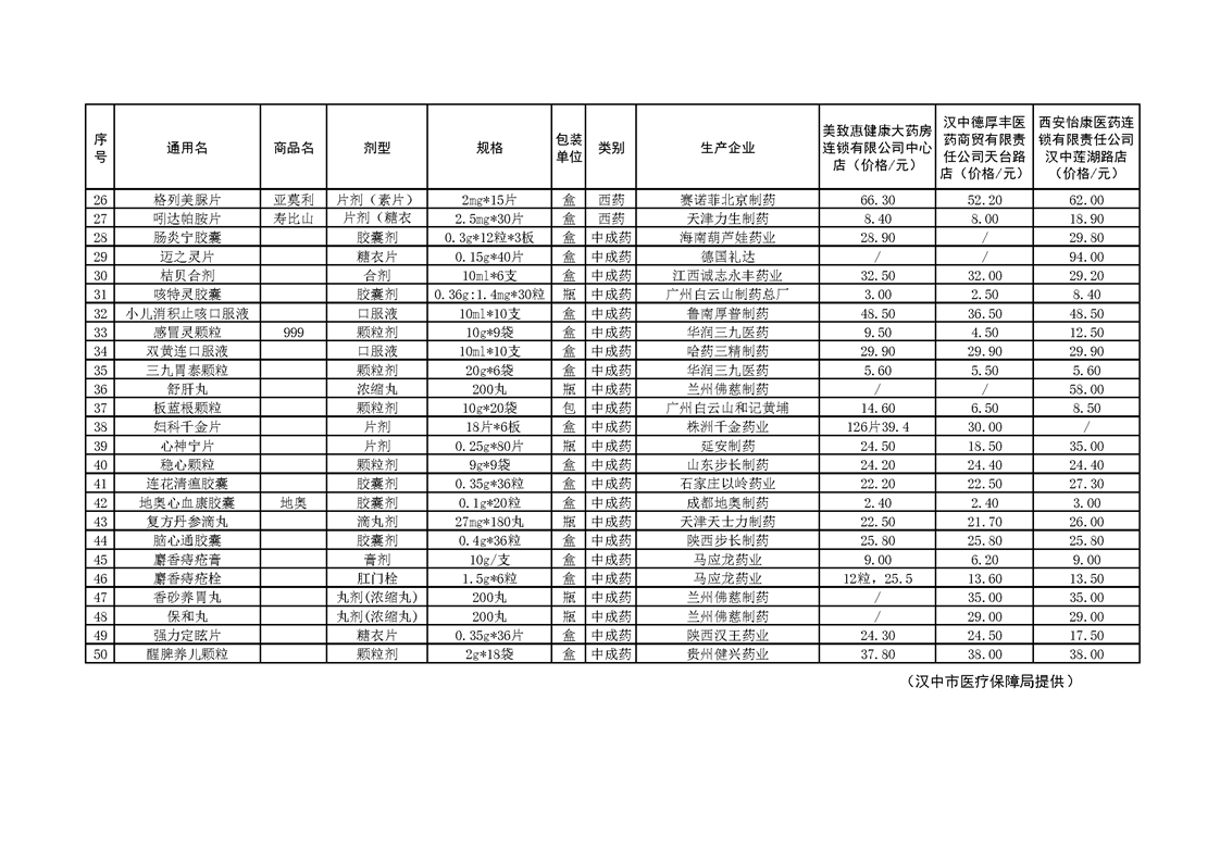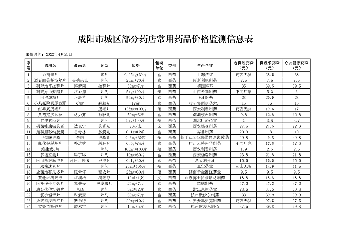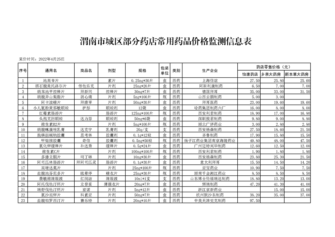 各市(区)部分定点药店常用药品零售价格监测情况(2022年第2期)