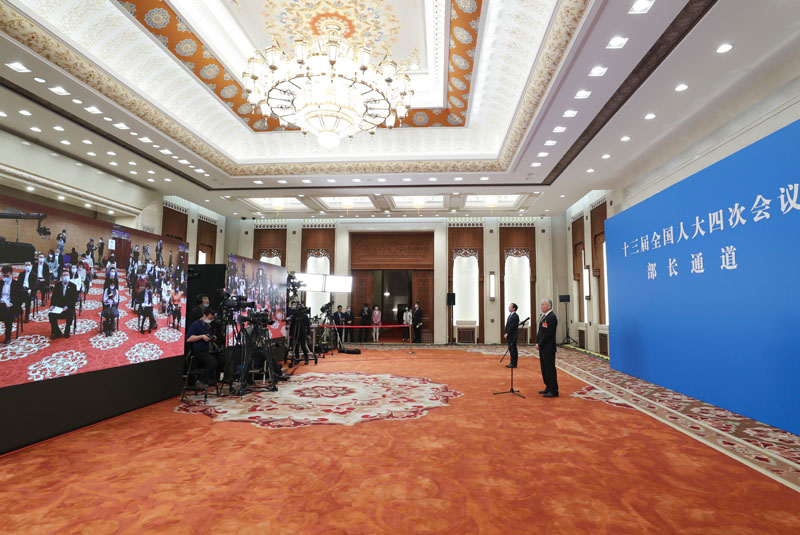 3月8日,第十三届全国人民代表大会第四次会议举行第二场“部长通道”采访活动。这是记者在分会场通过网络视频方式提问。