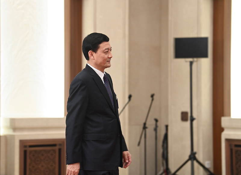 3月8日,第十三届全国人民代表大会第四次会议举行第二场“部长通道”采访活动。这是工业和信息化部部长肖亚庆步入“部长通道”,准备通过网络视频方式接受采访。