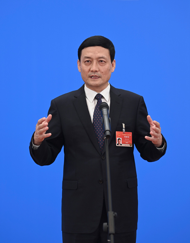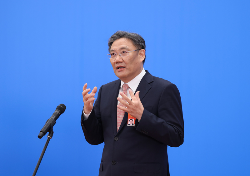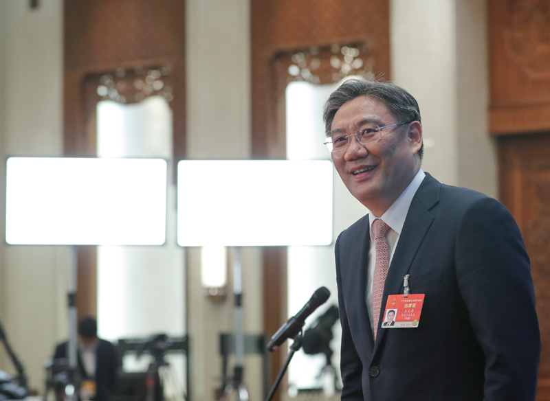 3月8日,第十三届全国人民代表大会第四次会议举行第二场“部长通道”采访活动。这是工业和信息化部部长肖亚庆通过网络视频方式接受采访。