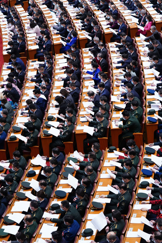 3月8日,十三届全国人大四次会议在北京人民大会堂举行第二次全体会议。这是全国政协委员列席会议。