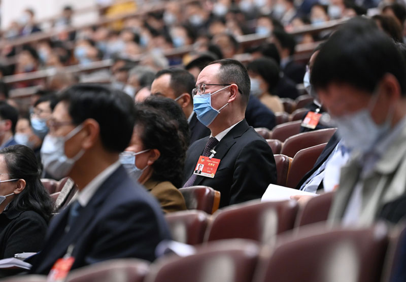 3月8日,十三届全国人大四次会议在北京人民大会堂举行第二次全体会议。这是代表们在认真听会。