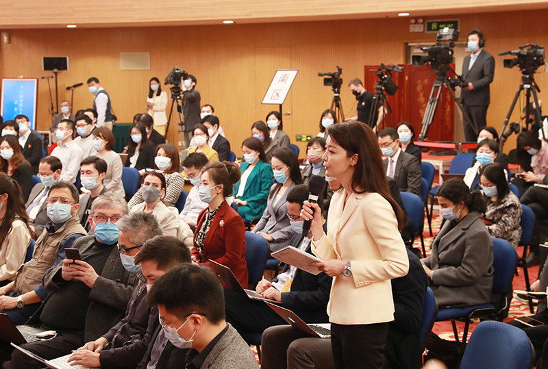 3月11日,国务院总理李克强在北京人民大会堂出席记者会并回答中外记者提问。这是记者在位于梅地亚中心的分会场提问。
