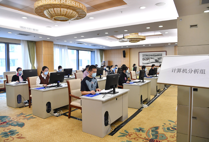 3月9日,十三届全国人大五次会议秘书处议案组计算机分析小组工作人员对收到的代表建议进行分类分析,形成综合分析报告,为建议的统一交办做准备。新华社记者 李鑫 摄