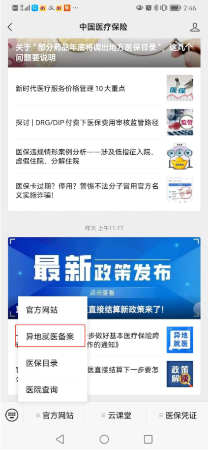 参保人在“异地备案”页面,可查询统筹地及定点医药机构的开通情况。